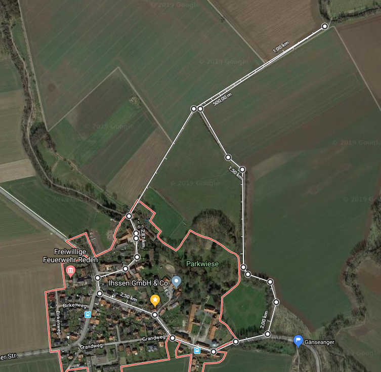 Die Strecke ist ca. 5,6km lang und führt durch die Masch Richtung Grasdorf bis zur Brücke.